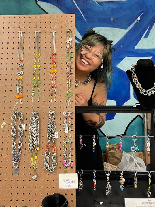 junk mail jewelry is a project of lifelong crafter, avee. frustrated by a lack of quirky-but-not-crappy jewelry options that don't piss her skin off, avee started junk mail jewelry with the goal of creating accessories that are fun, versatile, and friendly to sensitive skin.