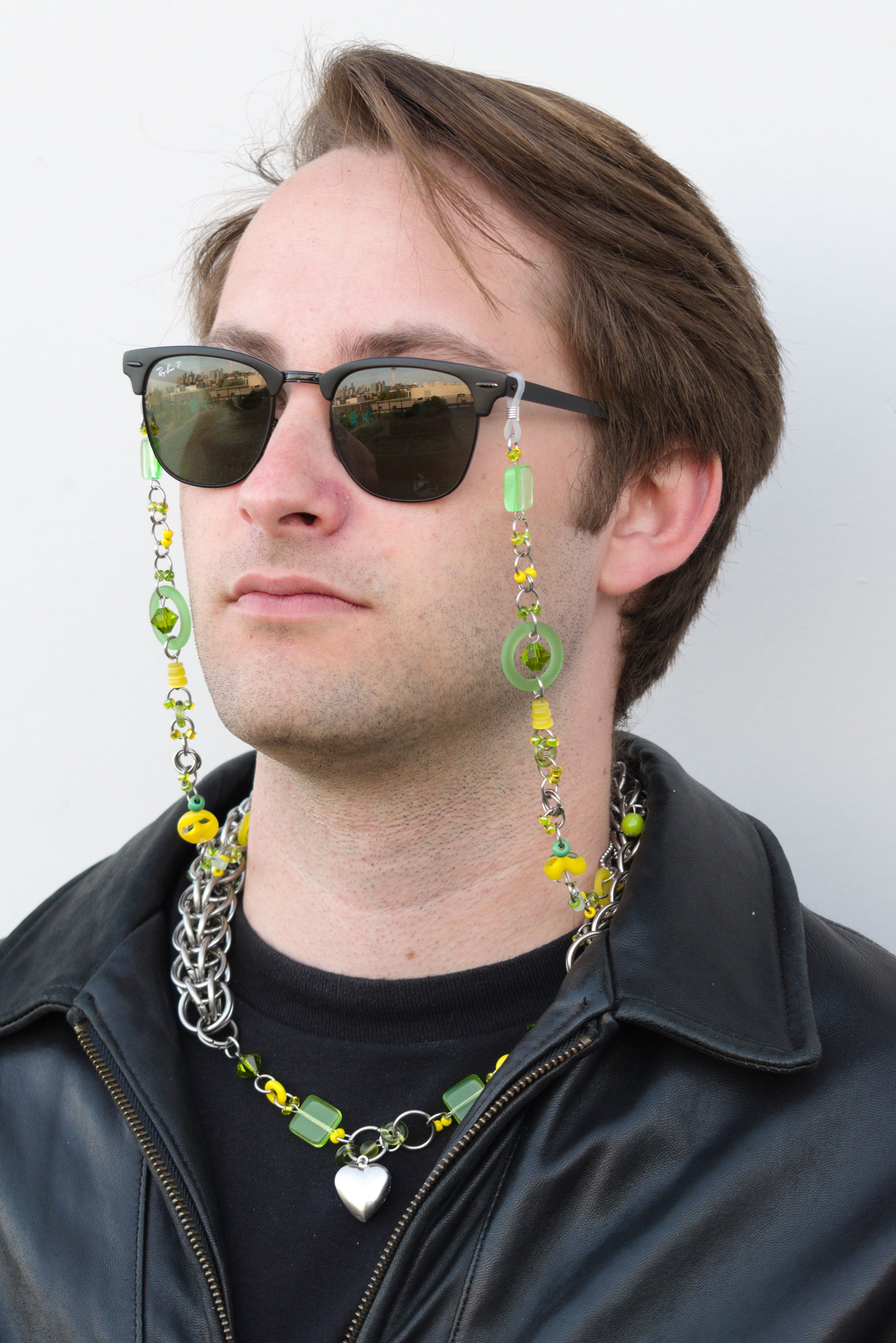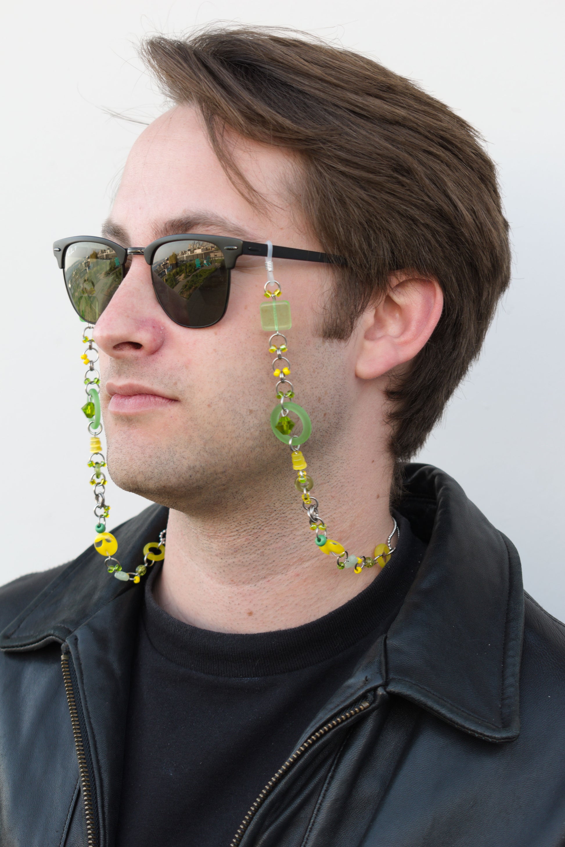 glasses chain: lemon-lime edition! Light, fresh, citrusy number with a collection of green and yellow beads. Designed to pair with the lemon/lime necklace.