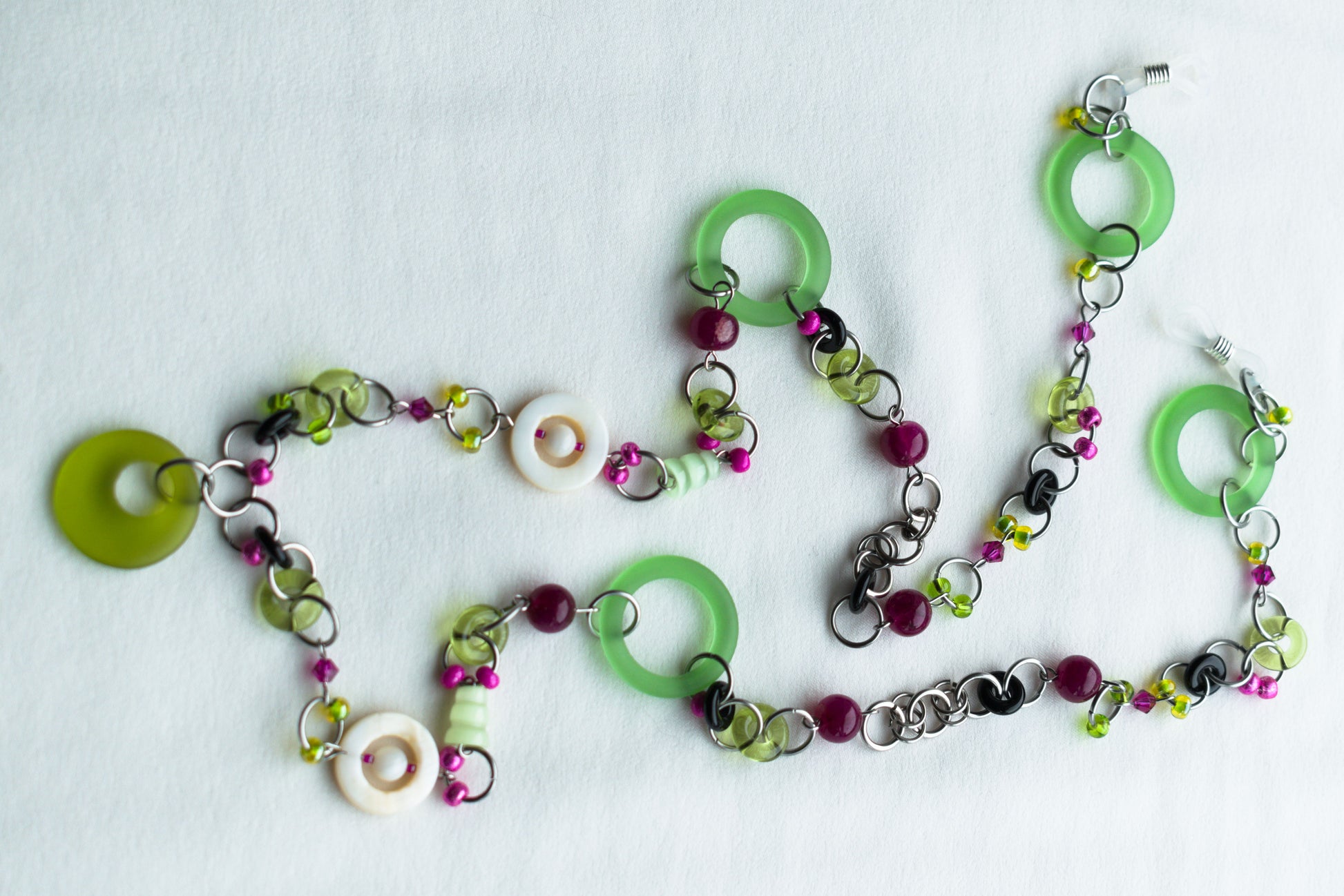 this glasses chain is inspired by the silly pink/green bermuda shorts my mom made me wear as a child. iykyk.